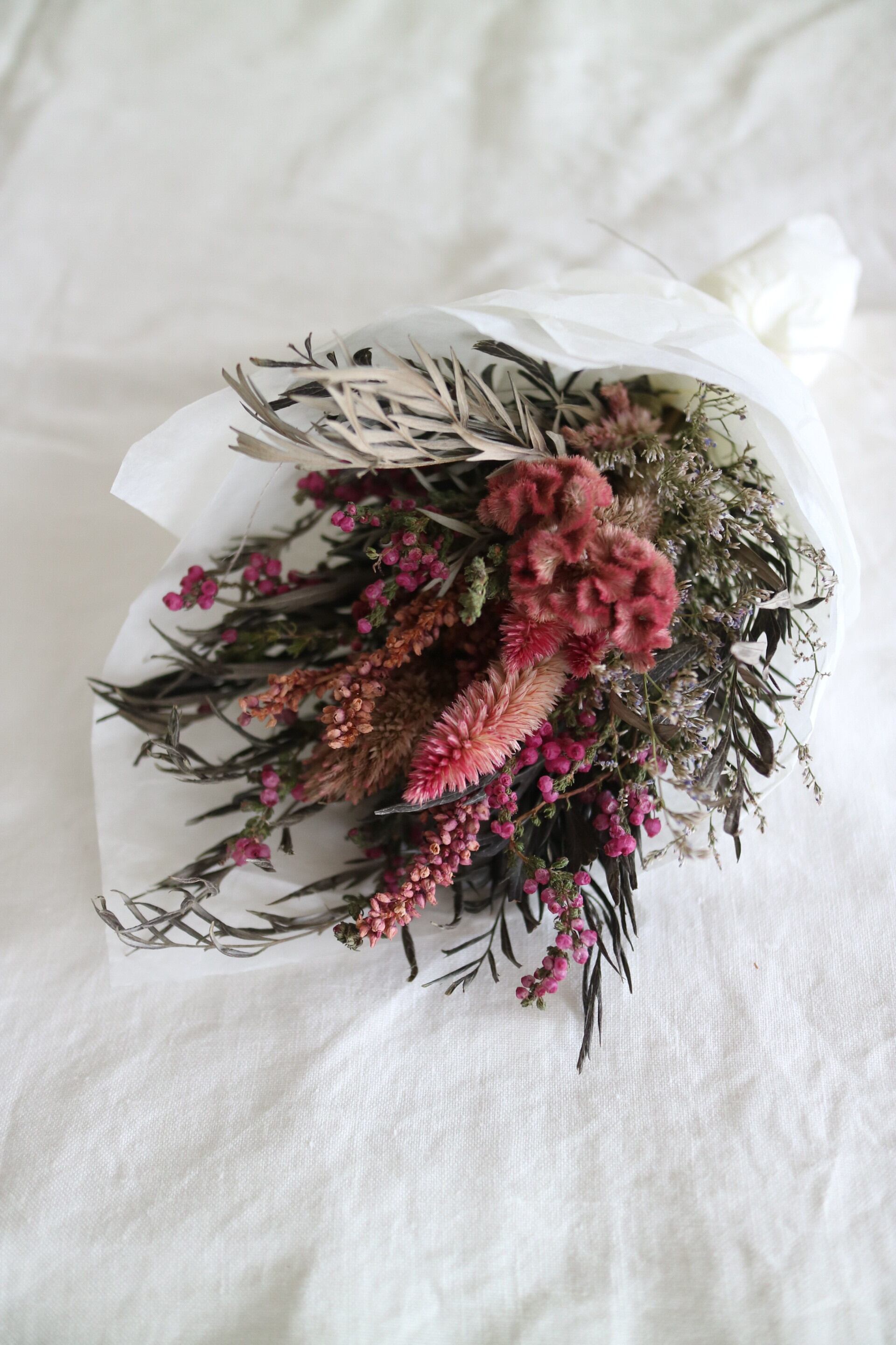 ・長さ28㎝ ・ケイトウ、エリカ、あまなどグレイッシュな大人ピンクでシックな組み合わせです。 ・エリカは接触により特に花部分が取れやすくなっております。ご理解くださいますようどうぞよろしくお願いいたします。 ・白い薄紙と細い麻ひもでラッピングした状態でお送りいたします。 そのままプレゼンにもしていただけます。 ・スワッグ用ワイヤ付き(壁にも掛けていただけます)