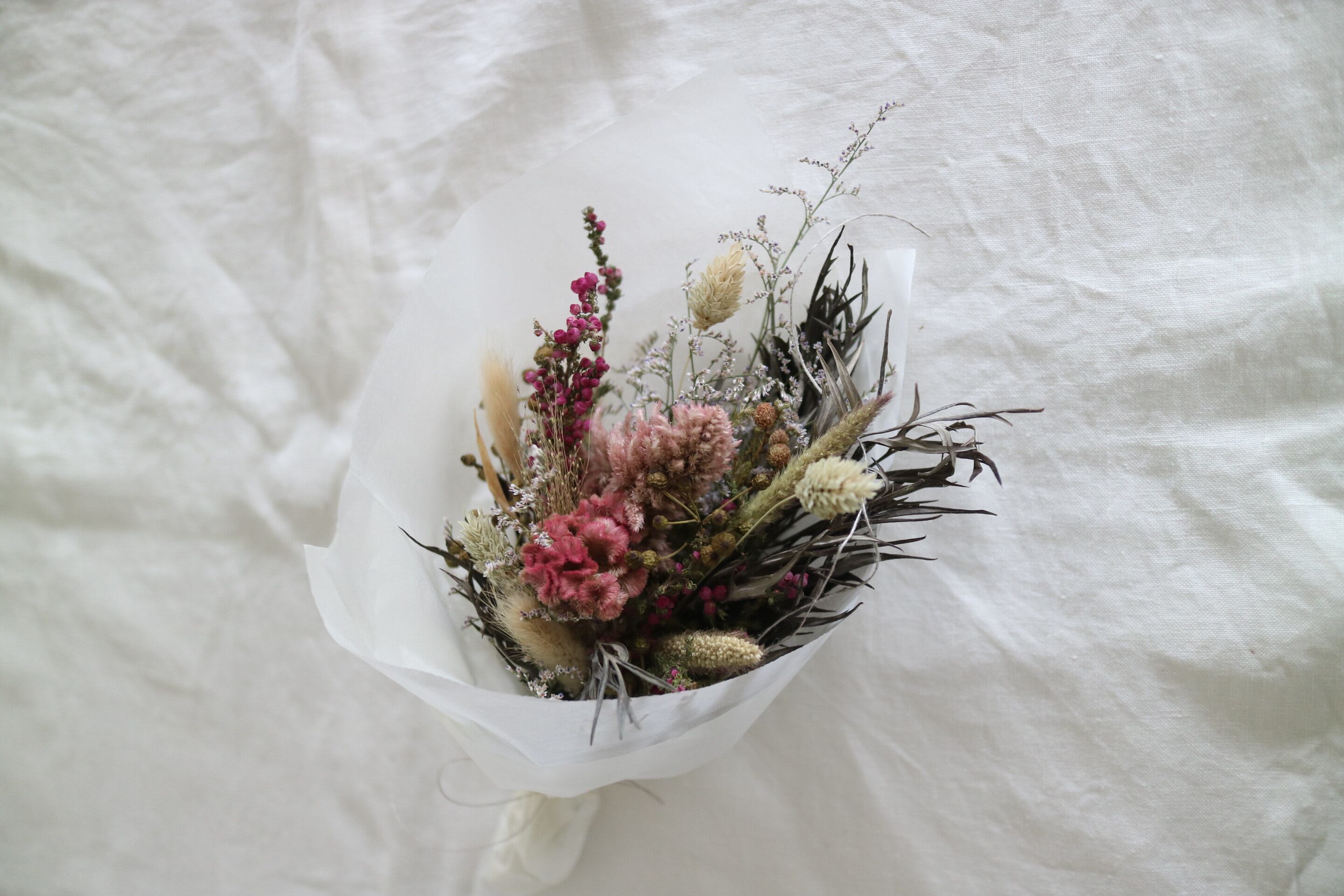 ・長さ28㎝ ・ケイトウ、エリカなどグレイッシュな大人ピンクでシックな組み合わせです。 ・エリカは接触により特に花部分が取れやすくなっております。 ご理解くださいますようどうぞよろしくお願いいたします。 ・白い薄紙と細い麻ひもでラッピングした状態でお送りいたします。 そのままプレゼンにもしていただけます。 ・スワッグ用ワイヤ付き(壁にも掛けていただけます)