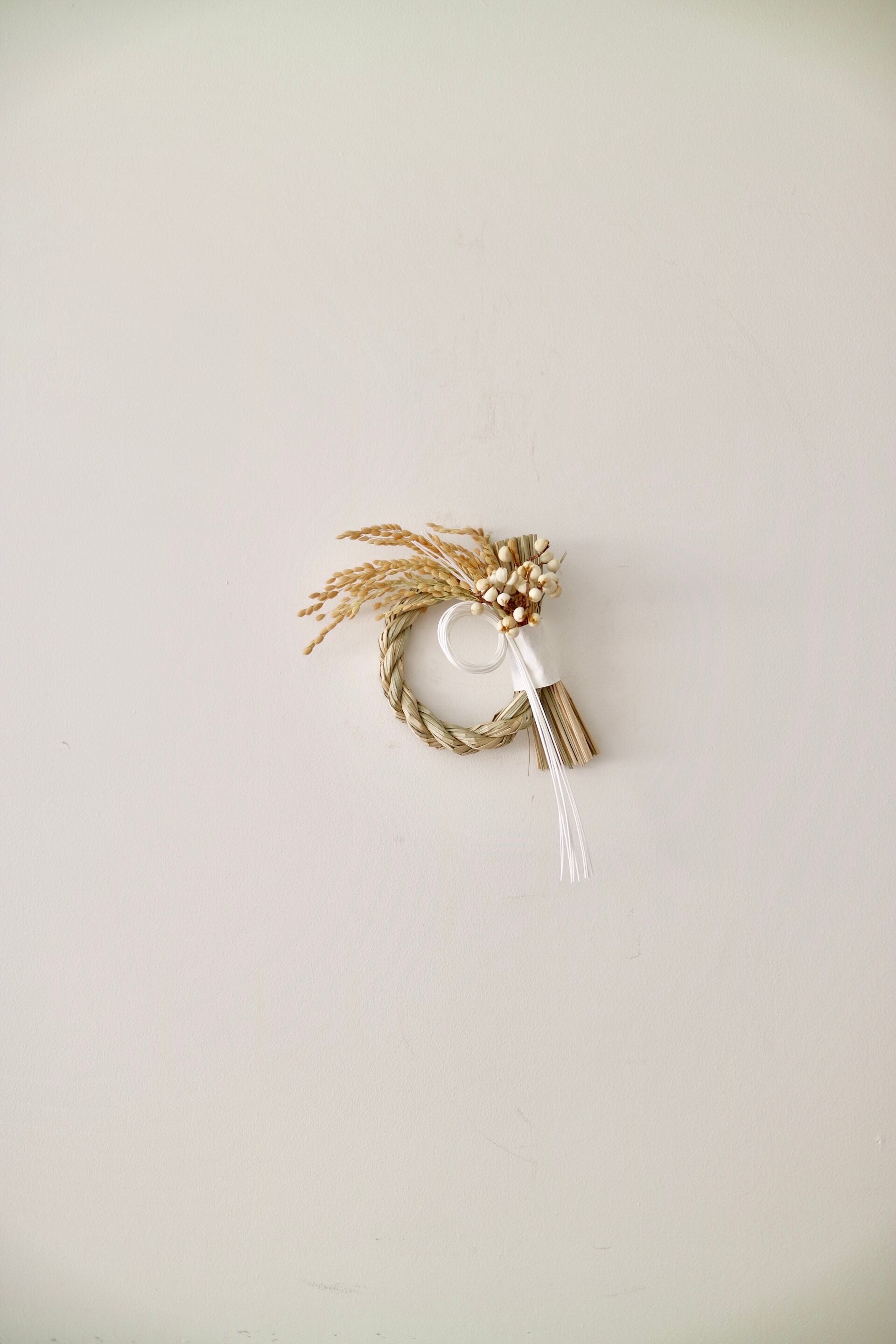 ・しめ縄 直径10cm ・ナンキンハゼ、白水引、稲穂のみでシンプルに仕上げました。