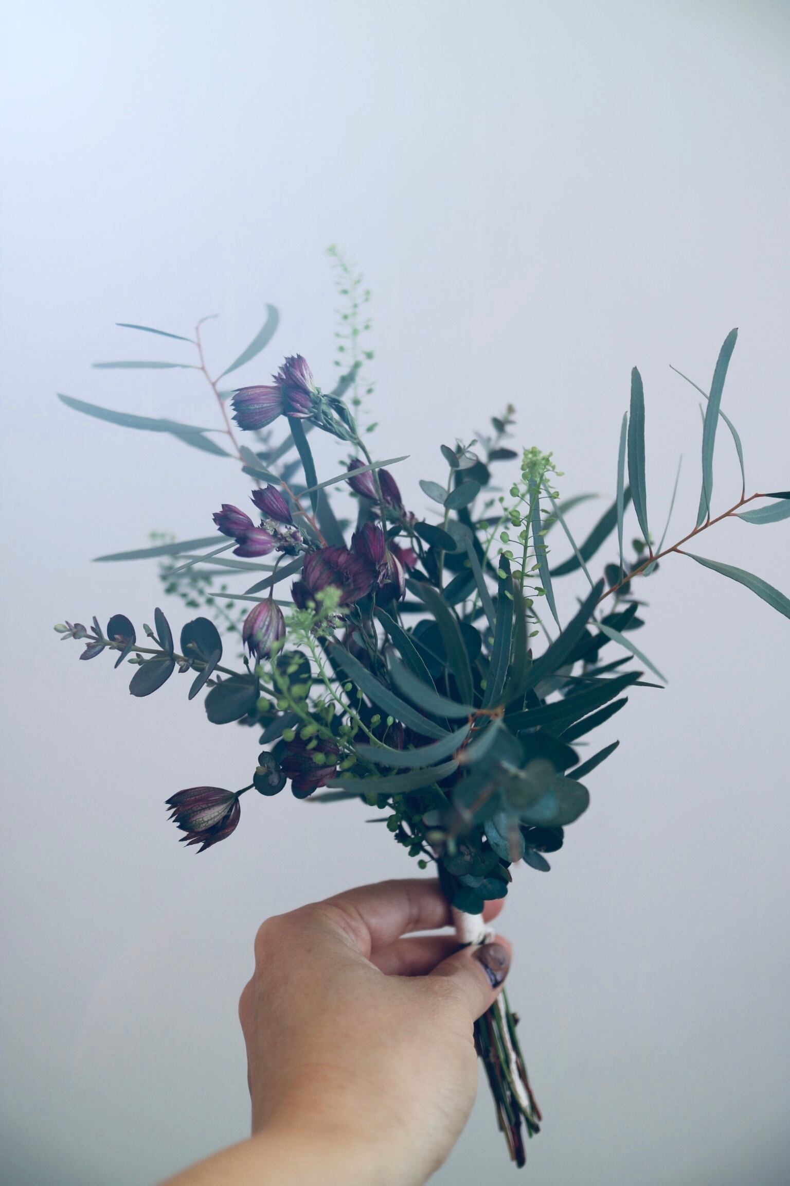 ・長さ 20cm ・アストランティアやユーカリなどをブーケのように束ねました。 ・花瓶にポンと入れても、棚に置いても、壁に掛けても♪