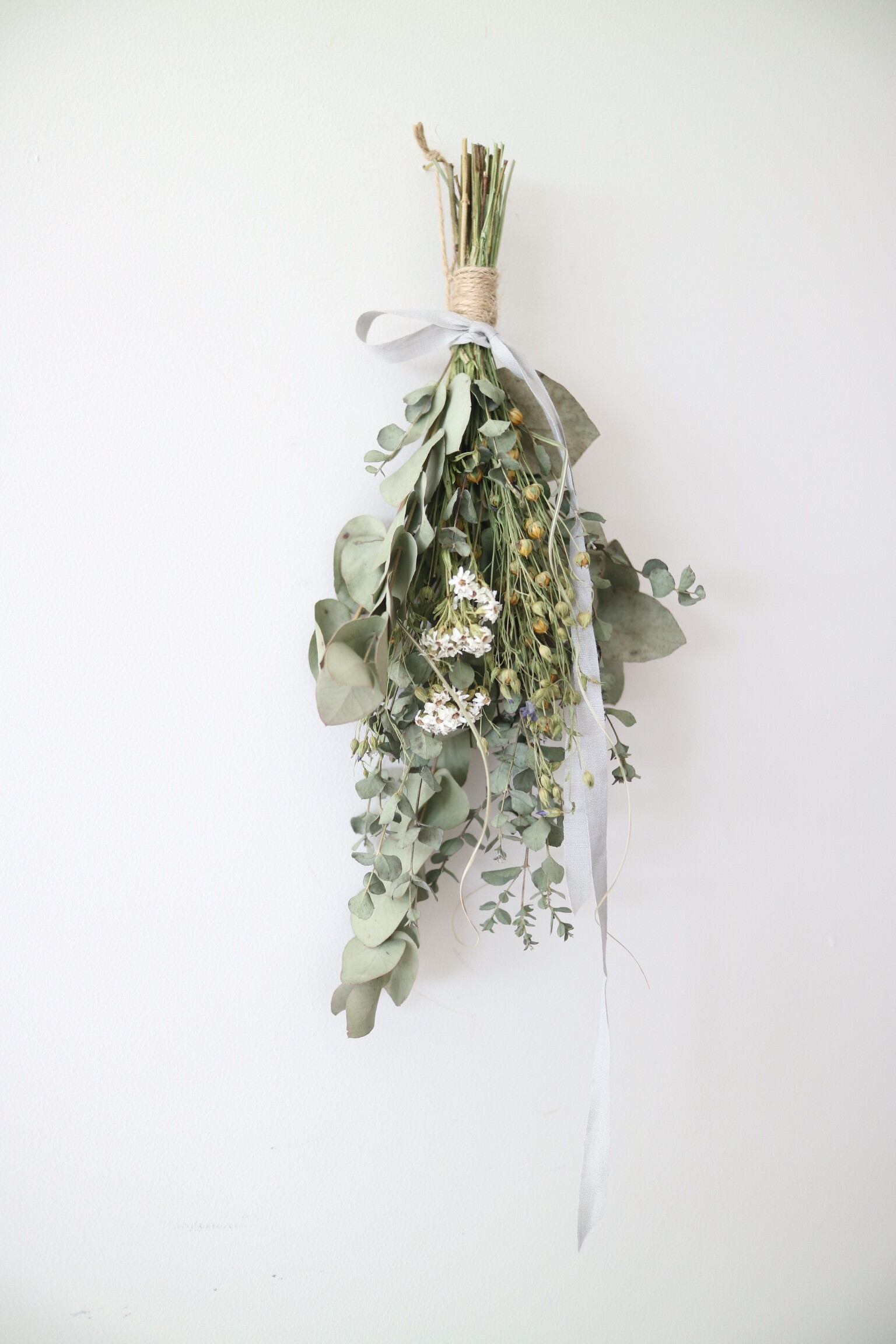 ・ミニデイジー、花あま、マルバユーカリ、グニーユーカリを使った初夏を感じさせるようなスワッグです ・長さ35cm ・全てドライの素材です ・ライトグレーのリボン付