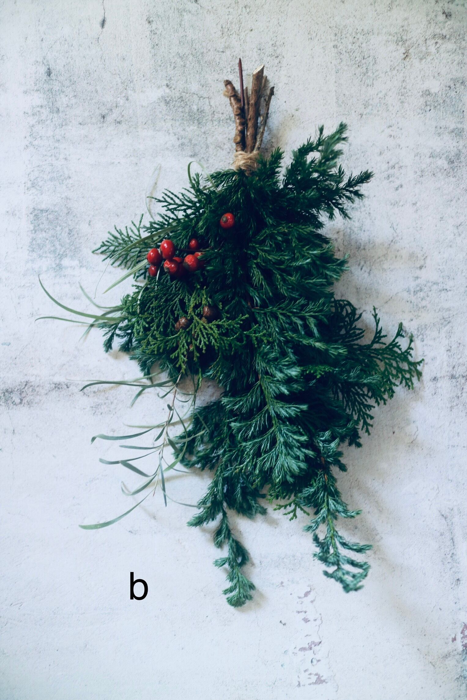 ・長さ 約40cm ・フレッシュなコニファーと aナンキンハゼ b薔薇の実 ・クリスマスまでドライになっていく過程を楽しんで頂けます