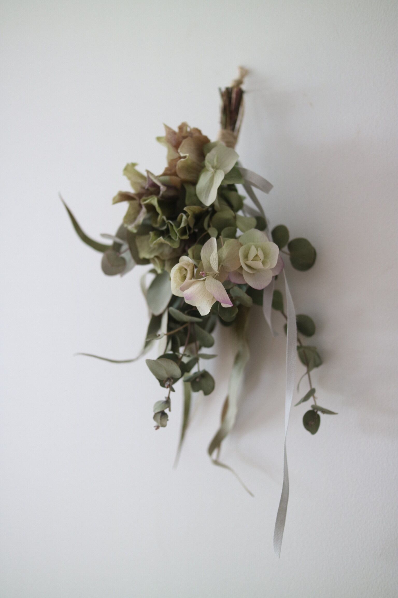 ・クリスマスローズ、オレガノ、マルバユーカリ、グニーユーカリ、レモンユーカリのスワッグ ・長さ25cm ・すべてドライ素材です