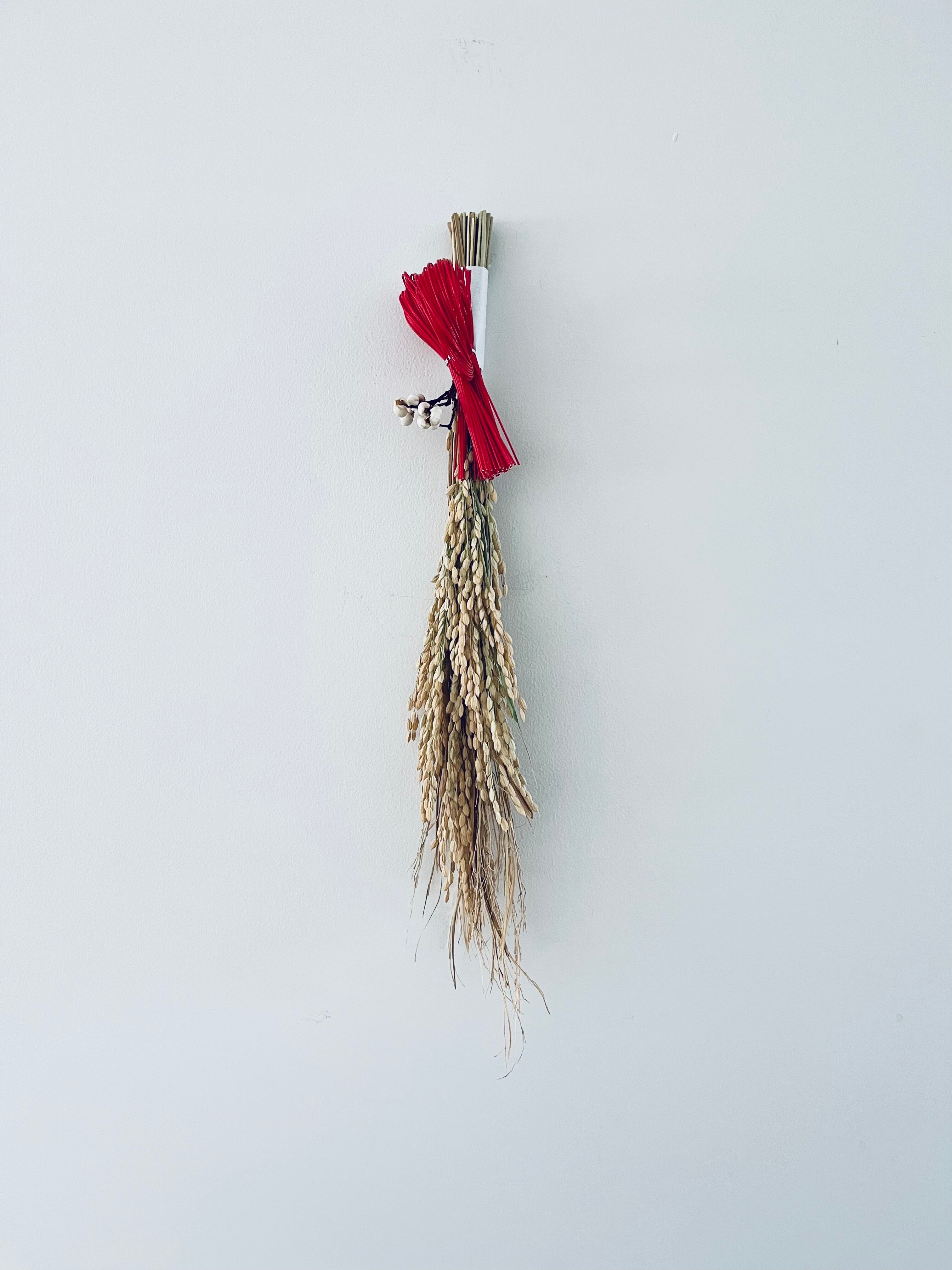 ・稲穂、藁、赤水引、ナンキンハゼで凛と