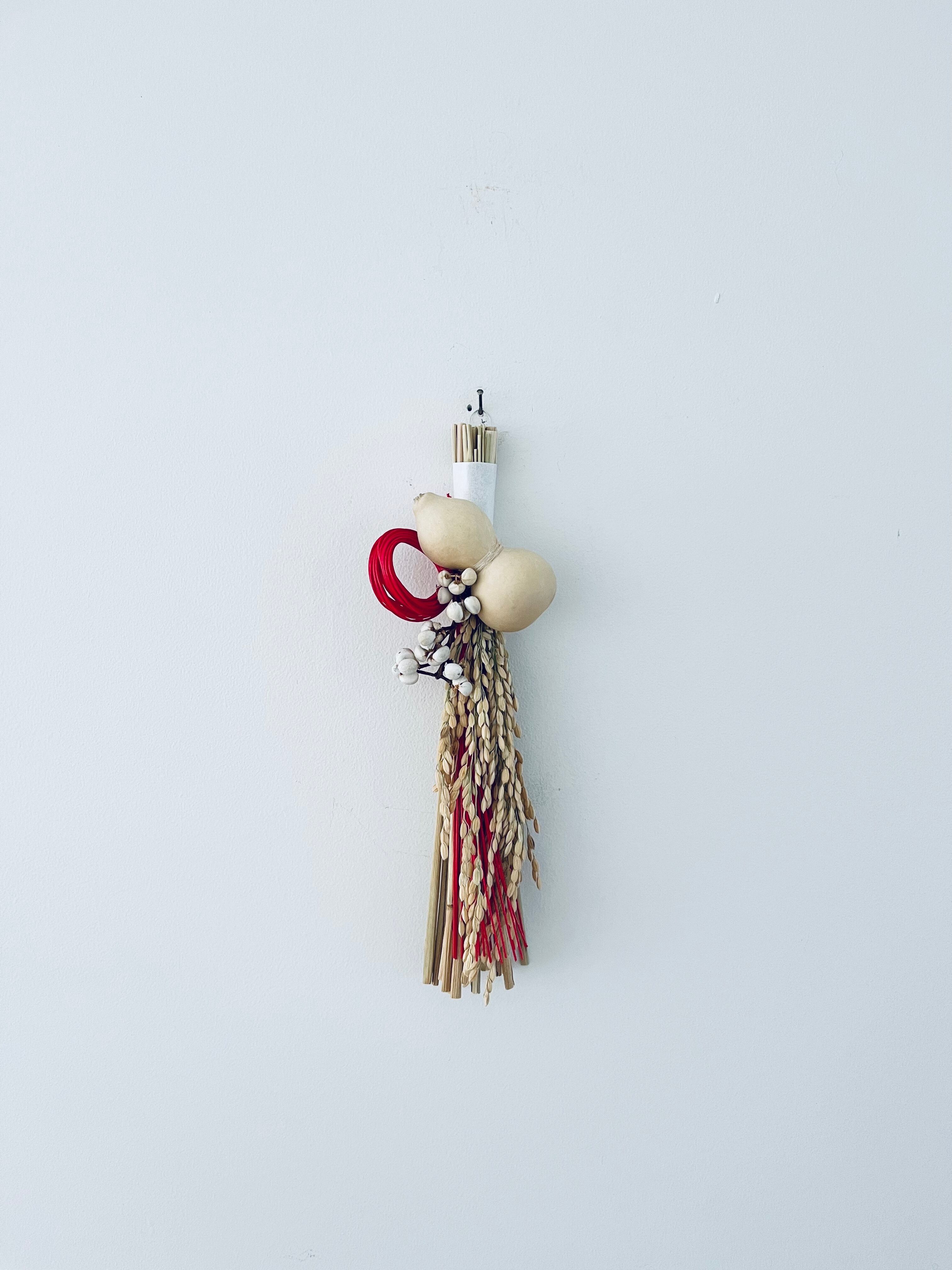・赤水引 縦26cm ・白水引 縦21cm ・ひょうたんに無病息災の願いを込めて ・水引、稲穂、ナンキンハゼなどと一緒に縁起良く